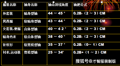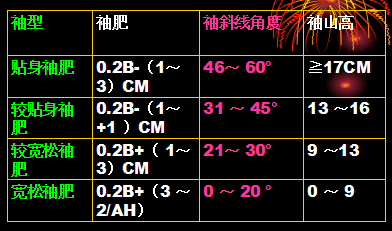 装袖角度是指袖底缝与铅垂线的夹角,试验证明装袖角度越小,袖山高越高,造型美观但活动性能差。装袖角度越大,袖山高越底造型不美观但活动性能强。